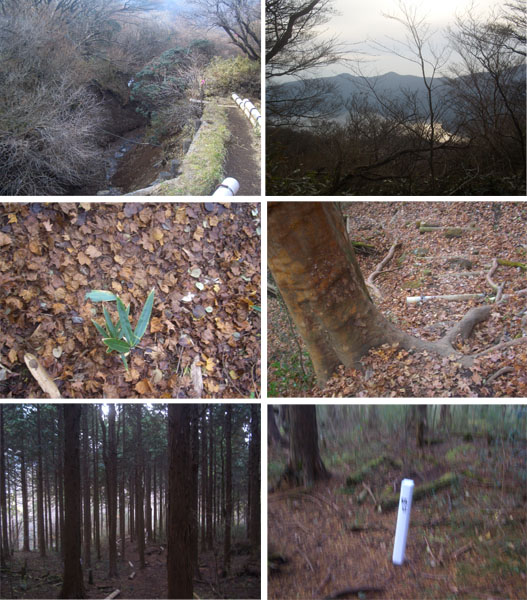 今日はとにかく風が強すぎるし時間も遅くなってきたので山頂探索はほどほどにして下山することにした。ハイキングコースに入ると今までの風が嘘のように影響しなくなる。下りはもときた道でハイカーグループについていく感じで足下に気をつけながら降りていく。途中一度休憩してなんとか駐輪してある坊ヶ沢入口に到着(1520)。あたりはもう夕暮時のような感じになってきた。