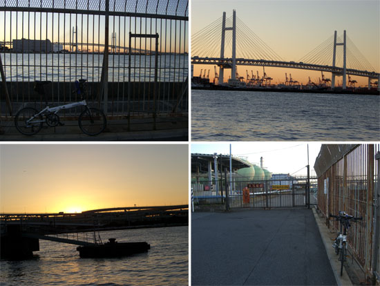 6時半前に大黒大橋ふもとに到着。そろそろ日の出時刻だ。橋の手前に公園が新たに整備されたようなので寄ってみることにした(大黒プロムナードもしくはダイコク・ディストリビューションセンター公開緑地という名称らしい)。横浜港がほぼ一望できてなかなかの眺めだ。今日は天気が良いので丹沢の山並みや富士山も良く見えていた。