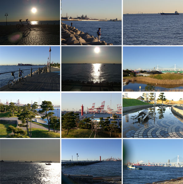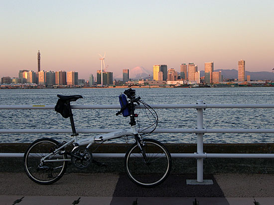ついでに大黒海づり公園へ久々によってみることにする。この公園は自転車乗り入れ禁止となっている。以前きたときは夏の昼すぎで暑かった印象だったが今回はちょうど公園の正面から太陽が昇っていて陽の光を浴びぽかぽかとして心地よかった。初日の出も房総半島ごしになかなか良い感じで見られそう。