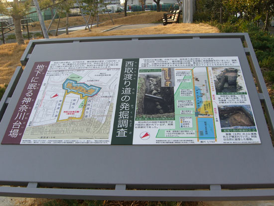 次に神奈川台場公園によってみる。これからまだ整備されるようだ。案内板を見ると江戸時代ではこのあたりは海で二つの渡り道で陸と繋がっていたとのこと。