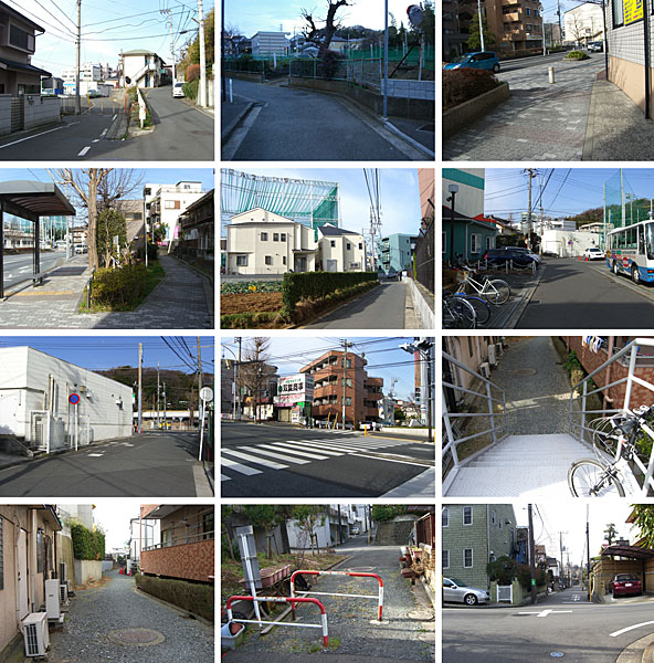 もときた道を戻り再び滝の川沿いへ。駐車場の裏を抜け大通りに合流。日枝橋バス停先から道路を横断してやまゆりゴルフセンター方面に左折しスポーツクラブ前へ(今ひとつはっきりしないが昔の地図を見るとそんな感じ)。このあたりもよくわからないがコンビニ裏あたりをぬけると片倉橋というものがあって大通りを横断していたようだ。ネッツトヨタ先に短い階段があったので担いで降りる。砂利道となり民家の裏庭を抜けて通りにでる。
