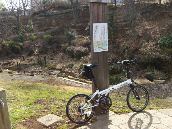 左右を見るとどちらものぼり坂となっている。住宅地を直進していくとほどなく片倉うさぎ山公園につきあたった。みちなりにみぎにまわりこんでいくと源流らしき場所が見えてきた。案内板があり