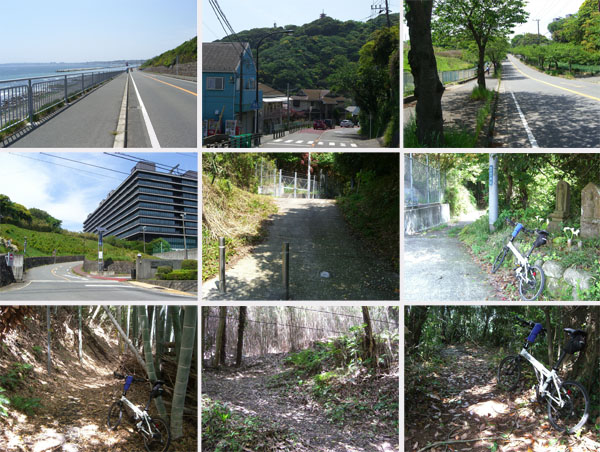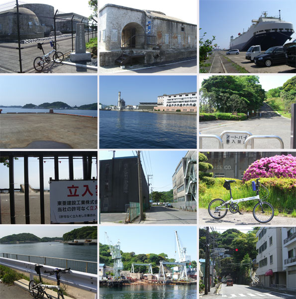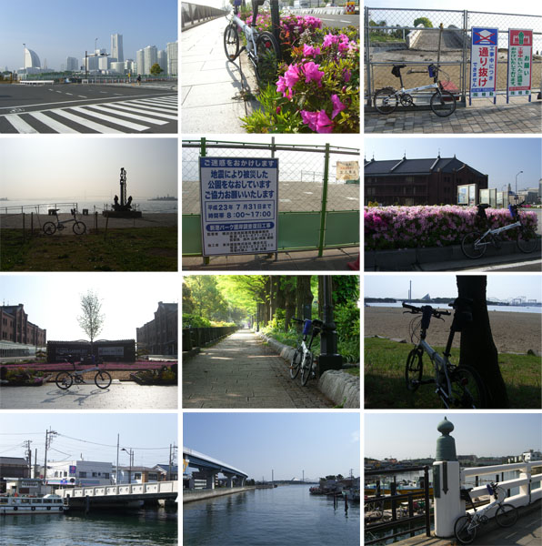 ゴールデンウィーク最終日に久々にちょっと修行?をしてくるかと自走で横須賀市と三浦市の境あたりにある砲台山〜武山間を抜けるコースを走行(ほとんど押し歩き)してきた。7時頃に出発。みなとみらい地区の海沿いの公園をのんびりと走行していく。先日の大震災で臨港パークの端にある汐入の池?あたりが立ち入り禁止となっていた。新港パークの海沿いも被害を受けたようで7月終わりまで工事のため立ち入り禁止となっている。みなとみらい地区は歩道沿いのつつじが綺麗。赤レンガ倉庫前を抜けて山下公園で小休止。薔薇の花がちらほら咲きはじめている。