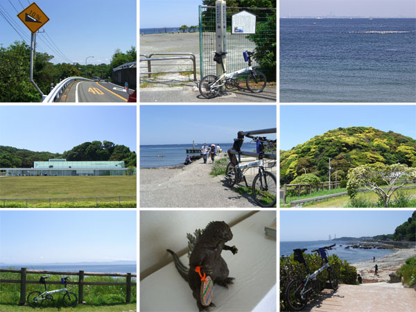ここから先はややアップダウンが続く。10%勾配の坂を下ると御所ヶ崎という案内板。広場の奥からは正面にランドマークタワーなどみなとみらいのビル群がぼんやりとしていたが確認できた。観音崎京急ホテル前を通過すると右手に横須賀美術館なる建物がある。美術館にはあまり縁がないけどたまには美術鑑賞してみるというのもよいかもしれない。ほどなく観音崎に到着(1115)。結構のんびりと走行してしまったようですでに11時すぎということで先へ急ぐ。トンネルを抜けてビジターセンターによってみる。観音崎の案内パンフレットを貰っておく。