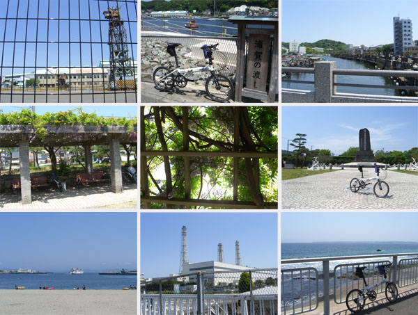 鴨居港交差点でどっちに進もうか迷うが今回は右折。丘を越えて気持ち良く下っていったら京急浦賀駅前にでてしまった。浦賀の渡しに乗船しようと思っていたが曲がりそこねたようだ。久里浜にお昼頃に到着。ペリー公園のベンチで補給休憩(1215)。15分ほど休憩して出発。公園前の歩道から千葉県金谷行きのフェリーが出港していくのをぼんやり見送る。火力発電所の煙筒が間近に見える。福島の原発事故を想起させて不気味に感じる。上りとなりトンネルを抜けると野比海岸だ。天気が良いので海や空も青く爽快だ。