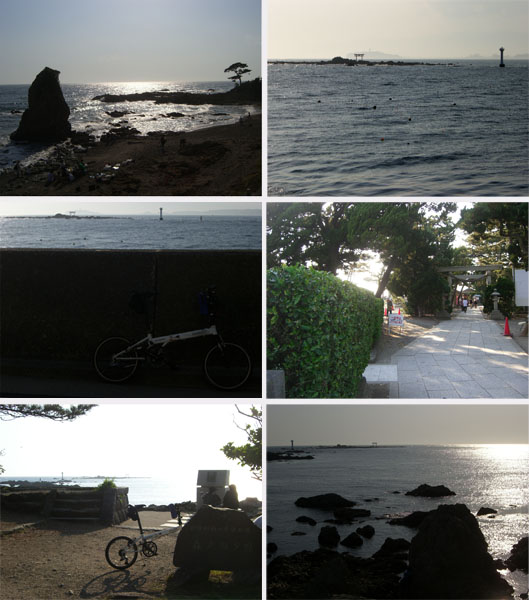 林ロータリーを右折してR134号線にでる。前輪からコツコツという異音が周期的に鳴っている。道路脇で確認してみることにする。砲台山からの下りでがたがた道を走ってしまったので車輪が振れてしまったのかもしれないなどと思いながらクイックレバーを緩めてとりあえずホイールを固定しなおしたりしてみる。何度か停車して調整?してみるが異音は消えない。とりあえず立石駐車場によって写真撮影。長者ヶ崎で自転車をひっくり返して安定させた状態でホイールを固定させてみるとなんとか音がでなくなり一安心。