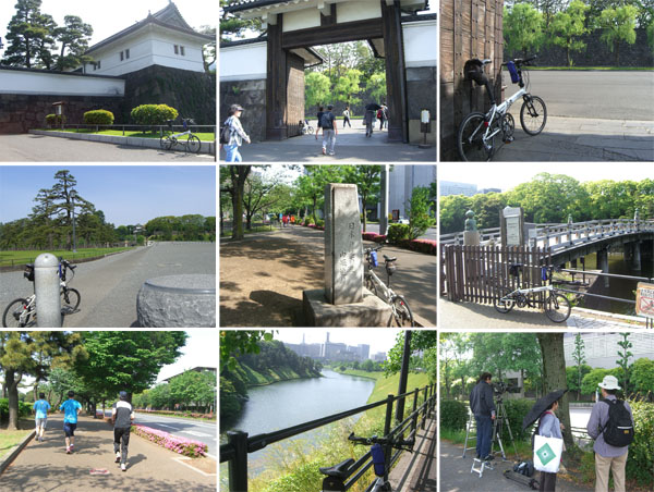 皇居周辺は相変わらずジョギングしている人が多い。パレスサイクリングはまだ開催されていないので(午前10時から)普通に自動車が通行している。ちょっと息を整えてから外周を反時計回りに走行してみることにする。ジョギングしている人より若干早いか同じペース(10〜15km/hほど)でのんびりと走行。三宅坂を下るとなにやらテレビカメラが道路の向かいの建物駐車場入口あたりを撮影している。入口付近にもたくさんのカメラマンが取り囲んでいる。ニュースになるような人がこれからでてくるのだろう。ほどなく桜田門前に到着。