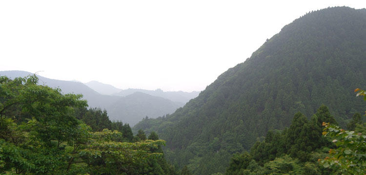 ほどなく左手側が開けてきた。山肌を削る工事をしているようで建設作業用の重機が何台か崖上にのっている。もう峠まで近そうだと思いながらひとのぼりすると峠らしき場所が見えた。峠直下に溜め井のようなものがありのぞきこんでいると上から家族連れが降りてきた。この道を下ると三増合戦場に出られるんですかと訊ねられたのでそうですと答える。峠にはテーブルとベンチが一組設置されていたので昼食にすることにする(1225)。合戦場跡から30分ほどかかったようだ。ちなみに志田峠の標高は310mほどのようだ。三増合戦場跡から峠まで約2.5km、未舗装区間は1km弱といった感じ。以前は峠の反対側も一部未舗装だったらしいが最近舗装されたらしい。昼食をもぐもぐと食べているとエンジン音が聞こえてきてじきにオートバイが現れた。ちょっと話をする。根小屋という割と近所からきたらしい。天気が微妙な感じになってきて湿っぽい風も吹いてきたがとりあえず計画通り次の目的地の服部牧場に向かうことにする。