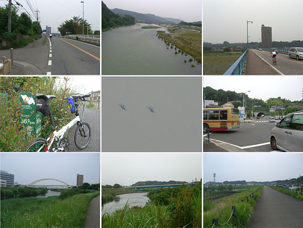 高田橋を渡ったところでお別れし相模原台地へのひとのぼり。上溝あたりで方向感覚をうしないうろうろして(以前もあったな…)淵野辺(1629)、馬駈、図師大橋、並木手前で鶴見川沿いにでる(1648)。米軍の戦闘機らしき編隊が上空を通過していく。ここからはのんびりと川沿いを中心に時々一般道にでたりして走行していく。鴨池橋にくるころには日も暮れてきた(1757)。疲れもピークに達しつつあるがもうひとがんばりだ。新横浜に18時半近くに到着。トイレで用を足してからなんとかまだ明るい19時前に無事帰宅した。