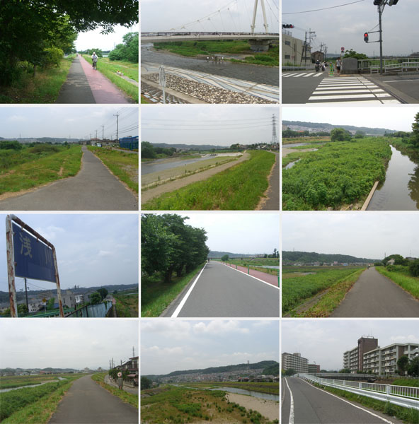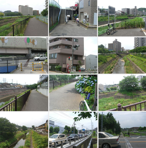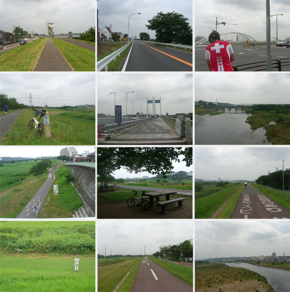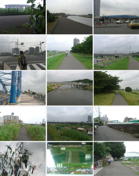 出発は8時すぎと遅め。今回も梅雨時らしく曇り空。先週に引き続き鶴見川源流経由ではつまらないので逆まわりの多摩川経由でいくことにする。新横浜方面に向かい亀の甲橋から鶴見川左岸沿い、新羽橋で右岸に渡る。鷹野大橋で左岸に渡り末吉橋手前から小倉緑道にでて先週と逆コースをと思ったが曲がる場所を間違えてやや迷走しつつガス橋に到着(0929)。丸子橋で右岸に渡る(0940)。二ヶ領ふれあい館前で休憩(1013)。ちょっと建物の中に入ってみる。水槽やら石やらが展示してある。奥に設置してある望遠鏡を覗くと鷺?が堰の上にぞろぞろとならんでるのが見えた。街灯脇に七夕飾りが風に揺れている。薄日も差してきて今日はかなり暑くなりそう。多摩水道橋をくぐりそのまま右岸を走行することにする。