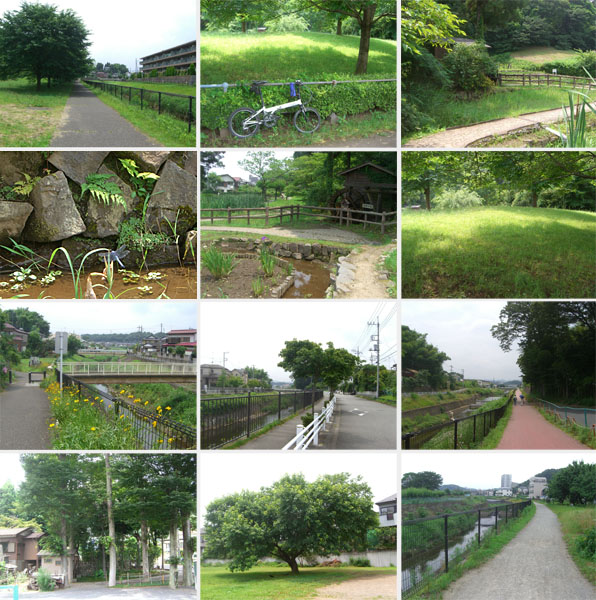 ●新横浜駅前公園にて(左上)/鶴見川沿いにて(上中)/新川崎駅前にて(右上)/多摩川沿いにて(ガス橋付近・丸子橋付近・等々力休憩所・二子橋付近・平瀬川合流地点付近・二ヶ領せせらぎ館前・多摩水道橋付近)