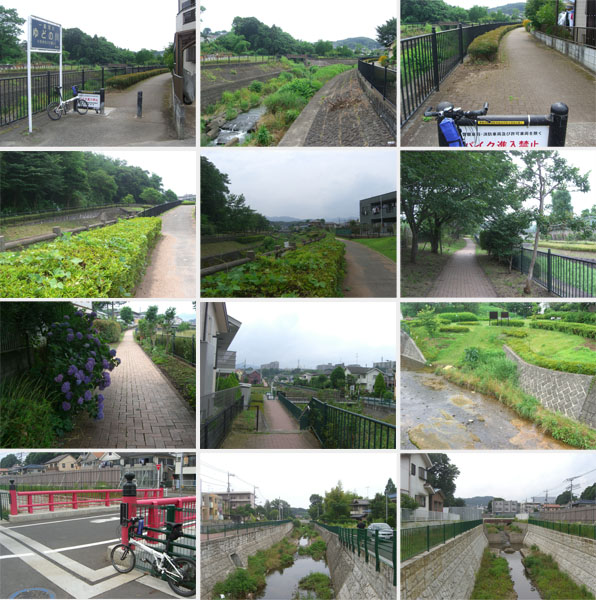 兵衛川合流地点をすぎてR16号線を横断するとじき片倉城跡公園で木陰が涼しそうだったのでお昼時ということもあり昼食休憩にする(1208)。この付近から周囲ものどかな感じになってきた。一部短い未舗装区間などもあらわれ再びレンガ敷きの遊歩道風の道となった。