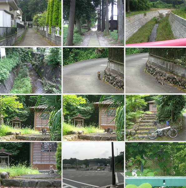 地図を確認すると神社の裏手を回っていけそうな道がある。西明神橋という赤い橋が出現。民家の間を抜けて大通りに合流する手前に石橋があったのでちょっと寄ってみる。奥の路地から猫が歩いてきて神社(梅元庵神社?)の境内にあがっていった(1300)。拓大北入口で町田街道にでる。