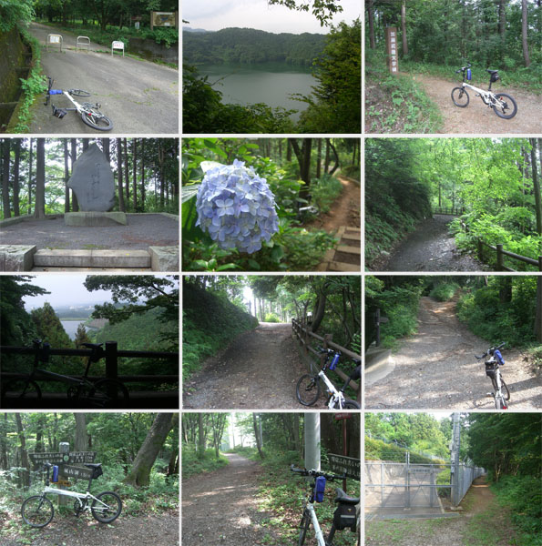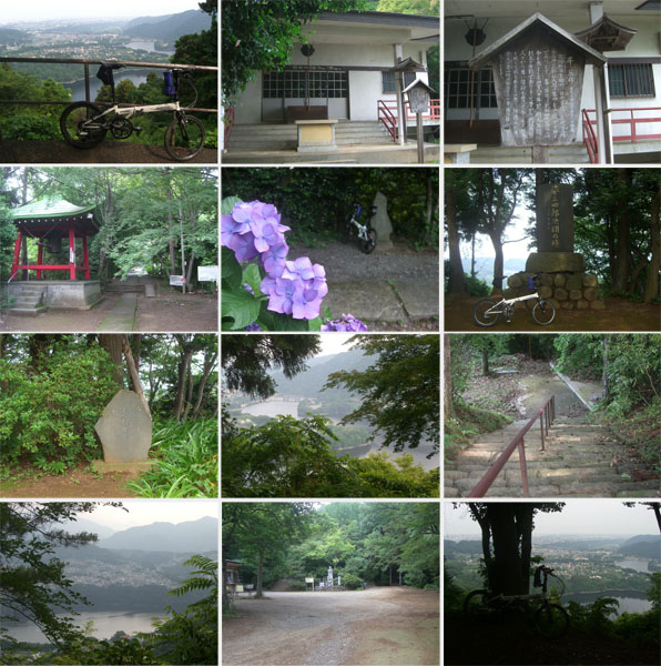 穴川沿いの遊歩道脇に紫陽花が咲いていてなかなか綺麗だ。この道も二輪車通行禁止の標識がある。なかなか急坂で先週の小松橋からよりも若干緩めだがやや距離が長い感じだ。右手から急傾斜の坂との合流地点をすぎ金刀比羅宮参道あたりまでくると傾斜も緩んだ。梅園前あたりを抜けて前回の道と合流してひとのぼりするとコミュニティーひろばに到着(1334)。暑さと疲労のせいもあってかかなりきつく感じた。ベンチにロードバイクの人がいたのでちょっとお話する。荻窪からきたとのこと。とりあえず頂上までいってみることにする(1407)。今回はややもやっとしているが城山湖と遠くに街並みが見えていた。