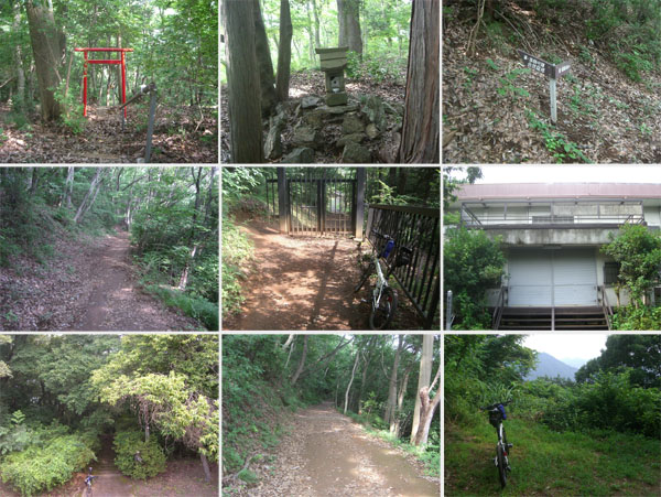 時間も遅くなってきたので早々に下って発電所脇からハイキングコースにはいってみる(1409)。入口からは急傾斜で自転車を押してのぼるのも結構きつい。ほどなく右手に城山湖が見えるポイントを通過。加藤武雄文学碑という案内柱があったので奥へいってみる。短い階段をのぼると石碑があった。奥へ下っていく細道を少し辿ってみるが発電所のほうに向かっている感じなので引き返す。野鳥観察小屋前を通り過ぎるとややきついのぼり道となる。やや湿っている感じだ。城山湖が眺望できる地点で一休み。さらにのぼると峰の薬師近道という案内板があるが直進する。ほどなく分岐地点にでた(1437)。峰の薬師方面は左に戻るような感じでのぼる道だ。右側が階段になっていたので左の道を進む。もう午後だったせいかここまで2組くらいハイカーとすれ違った程度で空いている。しばらくするとまた分岐地点にでた(1442)。右にいくと関東ふれあいの道、三沢峠0.2km・梅ノ木平3.3kmとなっている。左にいくと関東ふれあいの道、峰の薬師・津久井湖となっている。左折して峰の薬師方面に向かう。無線中継アンテナ前を通過し三井無線中継所横を抜けていく。
