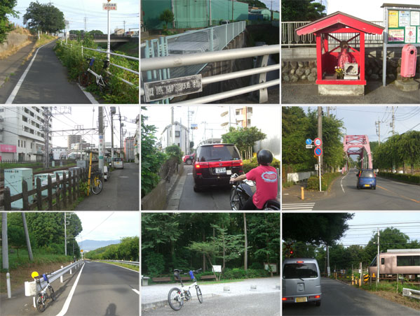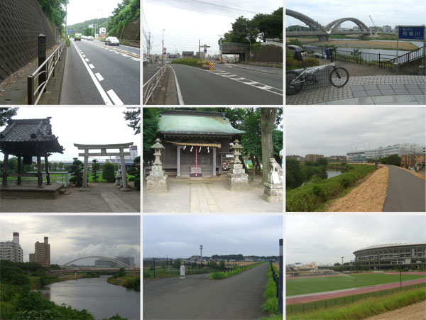 ●善波トンネル前にて(左上)/船子洞門(上中)/相模大橋よりあゆみ橋を望む(右上)/下今泉あたりの神社(中左・中)/鶴見川沿い(中左、落合橋付近)/鶴見川沿い(左下、鴨居付近)/新横浜公園付近(下中・右下)