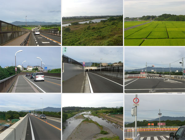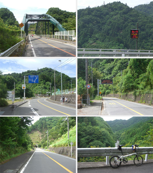 左折して陸橋を下りやや迷いつつ中津川右岸沿いの道にでてみる。この区間は未舗装だったり舗装してあったりといったかんじだった…のんびりと走行するにはよいかな。ほどなく才戸橋に到着。ここから川沿いを離れて側道へでる。交通量は多いけど気持ちよく走って八菅橋に到着(0727)。