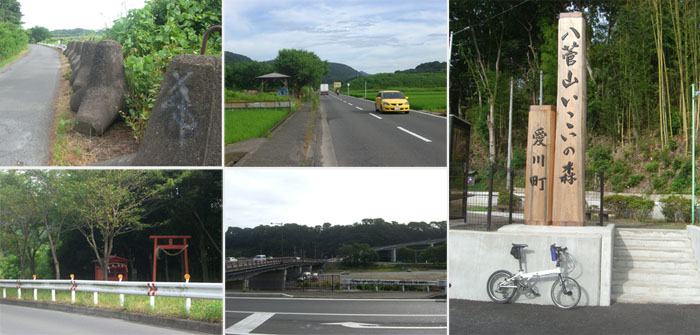 このあたり左岸側の道は結構交通量が多いので左折したほうがよかったかも。田代で左折して平山橋を渡る(0751)。お祭りの時期なようで八坂祭という案内板が橋の上に吊り下がっている。橋を渡って道なりにのぼって右折すると平山坂下という交差点にでた。ここは右折して宮ヶ瀬湖方面に下っていく。塩川滝という案内板がある。右折して下っていくと行けるらしい。このあたり空気が少し冷んやりとしている。トンネルまでのぼってアップダウンをこなしていくとほどなく愛川大橋に到着(0815)。気温もかなりあがってきて暑くなってきた。橋の先にコンビニがある。