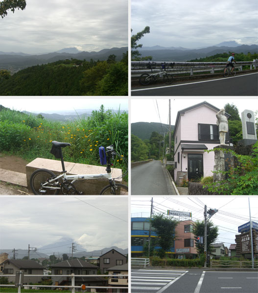 2〜3分ベンチに寝そべる。峠はそこそこ賑わっていて蜩が鳴いていていい感じ。15分ほど休憩して表側に下る。路面も綺麗で快適に下っていける。菜の花台手前の眺望ポイントで停止。富士山は上半分雲隠れしている。菜の花台でも5分ほど休憩。自転車(ロードバイクの人が多いが)もこの暑さに関わらず結構すれ違う。こちらからだと距離は短いけど大変だ。丸舗装区間が現れがたがたと下り蓑毛のバス停で停止、浅間山林道へと思ったが今回はやめておくことにした。急坂直線区間で50km超となったので慌ててブレーキで減速。下りはほどほどにしておかないと…。あっという間に名古木交差点まで降りてきてしまった(1158)。ちょうどお昼時で下界はかなり暑くなっていた。