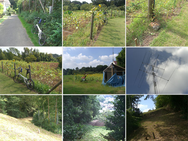 法隆寺交差点を過ぎて菊名小入口バス停先の信号を渡り脇道に進入。住宅地の中を抜けて獅子ヶ谷市民の森方面へ右折する(どこで曲がるかちょっとわかりにくいが…)。直進すると環状2号線にでるようだ。このあたりは昨日探索したのだが結構入り組んでいて坂道も多いので結構迷う。地図を確認して区界の道を辿ると行き止まりっぽい感じだ…が民家の脇に小径が続いているような…とりあえず進んでいくと右手が畑地になっているようだ。さらに進もうとすると通路に蜘蛛の巣が張っていたので払って前進。見晴らしのよい民家の裏庭のようなところにでた。大きなアンテナが建っている家がある。何のアンテナだろうかアマチュア無線か何かだろう。境界を示す赤い石が柵沿いに埋まっていた。この先は森につづいているらしい。通過できそうもないので引き返すことにする。