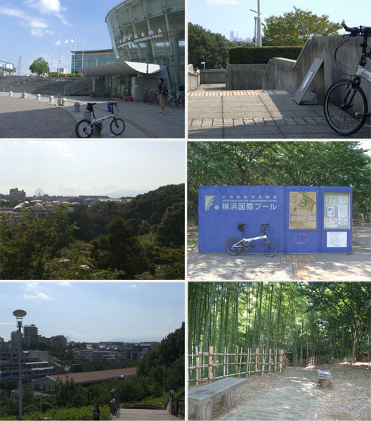 たぬき公園前で左折して横浜国際プール前にでる。プールの裏手に回ると展望台のような建物があるが立ち入り禁止のようだ。スロープが下に続いていたので降りてみることにする。小さな広場があって展望台があり丹沢や横浜ランドマークタワーが見晴らせた。公園内はアップダウンがあり結構複雑そうだ。隣の山田富士公園にもよってみようかと思っていたが今回はパスすることにした。