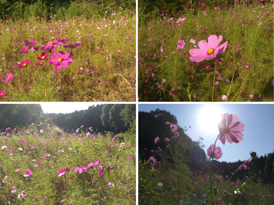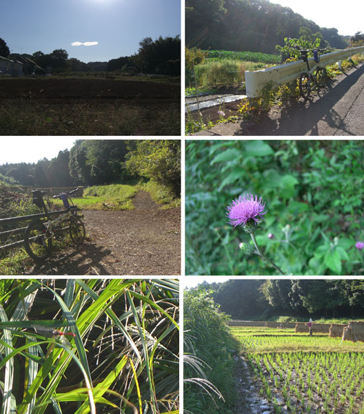鶴見川沿いにでて上流方面に向かう。落合橋から中山駅裏を抜け田園地帯を走行し梅田川沿いを遡っていく。出発した当初は境川の遊水池公園まで行こうかと思っていたが気が変わって新治市民の森によってみることにした。遊水池手前で川沿いを離れる。分岐地点の表示板に従っていくとそれらしき場所に出た。寺家ふるさと村よりコンパクトな谷戸で水田には稲が天日干しされていた。脇に小さなコスモス畑もありちょうど見頃な感じか。