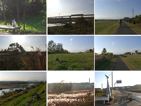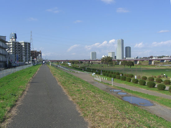 綱島から綱島街道経由で日吉の坂をえっちらとのぼる。なんだかしんどい…。これはかなり体力低下してきているかも…。市ノ坪で左折して武蔵小杉駅方面に向かうがちょっと狭くて走行し辛い。等々力緑地前にくるとマラソン大会でもあったのか大勢の人が歩いている(ちょうど終了したようでよかった)。多摩川の堤防にのぼり上流に向かって漕ぎ出す。上流方面は7月に湯殿川沿いで城山湖に行って以来約4ヶ月ぶりだ。土手にのぼると広々と視界が開けて気持ち良い。