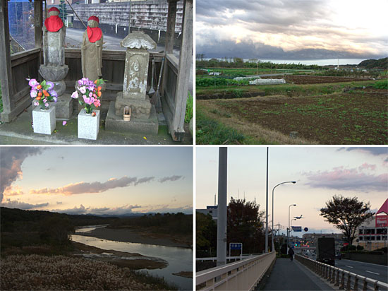 30分ほど散策していただろうか急に風が吹いてきて枯葉が舞い散って怪しげな雰囲気になってきた。風雲急を告げるといった感じだ。上空を見あげると青空が覗いているが東には不穏な雲が低く垂れ込めている。拝島橋まで戻ると頭上をちょうど米軍の輸送機が通過し基地に着陸していくところだった。この時期午後4時ともなるともう夕暮れということでライトを装着しておく。