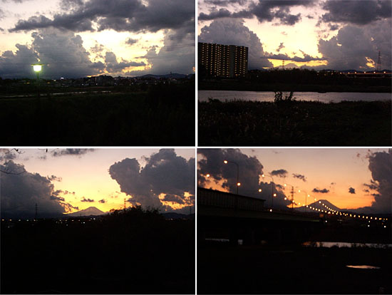 時刻は午後5時ちょうど。ライトを点灯、ここから夜間走行だ。なにか時々前方の雲間から稲光のようなものがしている。ここからほぼノンストップで多摩川原橋まで走行、でこぼこ区間を避けようということで右岸に渡ってみる。稲田堤まで車と並走区間でトラックに追い抜かれたりするとやや冷や汗がでるがなんとかサイクリングコースに復帰。結構ばててきた。そういえばすでに70kmほど走ってきたのに水分補給以外何も食べていないしちょっとやばいかなといことでとりあえず常備していた飴玉を舐めておく。二ヶ領ふれあい館前でトイレ休憩。風が強くなってちょっと冷えてきた。ここまでくればあと少し(まだ20km以上あるが…)。等々力の休憩所でストレッチしていると太腿がつりそうに…。久々の100km超の走行はなまっていた身体にはやや厳しかったか…。丸子橋で多摩川沿いを離脱後ちょっと買い物。綱島あたりまでくると雨がぽつぽつと落ちてきたがたいしたことはなさそう。ちょっと前まで結構どしゃぶりの雨が降っていたようだ。午後7時半頃に無事帰宅。
