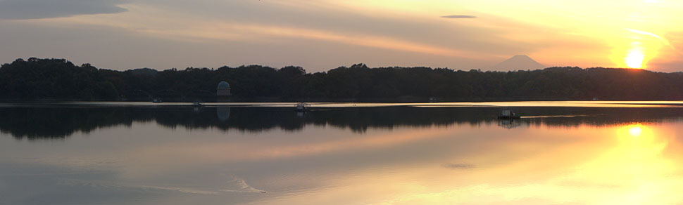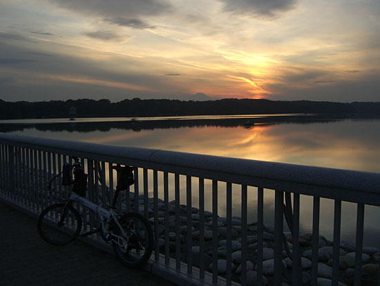ここは以前きたときは工事中だったが無事完成したようで通り抜けできるようになっていた。今回はここからの夕景が絶景で富士山のシルエットも見え湖面に映る夕日が綺麗だった。