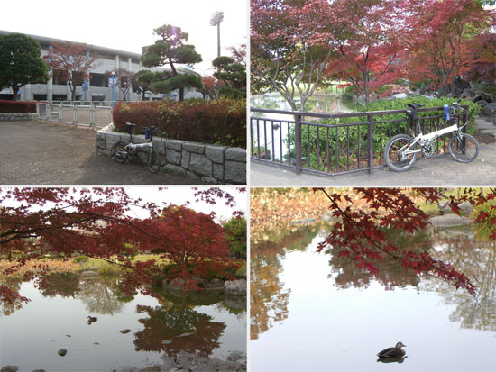 今回は東京都や埼玉県の水瓶である狭山湖(山口貯水池)・多摩湖(村山貯水池)に行ってきた。久々に午前に出発といっても8時半すぎと遅めだが…。天候は先週よりもやや寒く薄曇りといった感じなので冬装備。新横浜から綱島街道にでて日吉の坂をのぼった後、今回は二ヶ領用水沿いに等々力緑地方面に向かうことにした。用水沿いはやや狭い部分もあるので(渋川沿いのほうが若干ましだったかも)のんびりと走行していく。小杉十字路付近で中原街道につきあたる。右折して小杉神社方面から等々力緑地に入る。競技場横の池の周辺の紅葉がそこそこ綺麗だ。