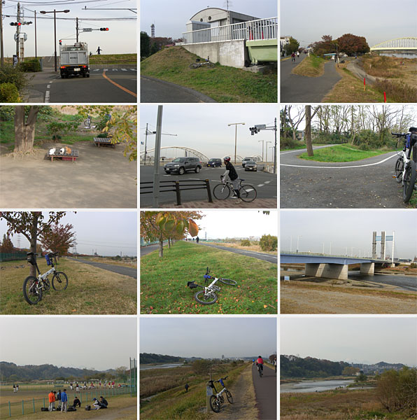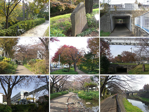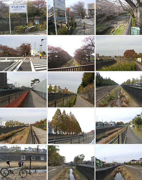 ということでここまで約2時間20分ぐらいか。顔を洗ったり水飲んだりして休憩。気温も少し上がってきたようなのでウィンドブレーカーを脱いでおく。ここからいったん川沿いを離れて貝殻橋から根川緑道沿いをのんびりと走行していく。路面はタイル舗装でやや走り辛いが一般道とは交差しないでいけるのがよい。多摩都市モノレールの柴崎体育館駅に到着。脇に結構有名な自転車店があったがまだ営業前のようだ(1124)。ほどなく残堀川との合流地点にでる(1129)。