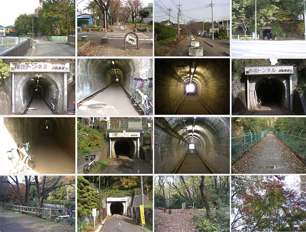 早速トンネルを抜けていく。何組かの人らとすれ違う。声がトンネル内に反響していて、ところどころ上から水が垂れている。横田トンネルをぬけるとすぐ脇には民家がある。赤掘トンネル、御岳トンネルを抜けるとちょっとぬかるんだ道となり森の中にでた。ほどなく左手に池のある休憩場所。番太池と書いてある。休憩していると親子連れの自転車が通過していく。さてどっちにいくのかと周囲を見まわすと赤坂トンネルというのがまだあったのでちょっといってみる。トンネルを抜けた先に未舗装の道が続いていたが今回は引き返すことにする。