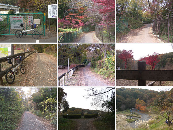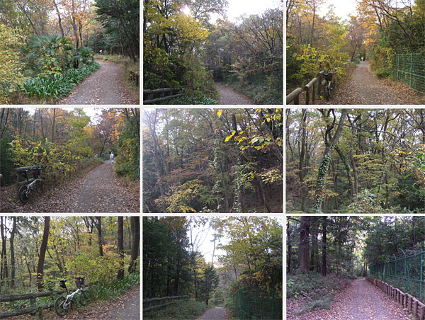左折して自転車道脇の通りを走行していく。両脇の樹木がところどころ紅葉している。今回は狭山湖を一周ということで交差点を左折してかたくりの湯方面に下っていく。給食センター手前のゲートに到着(1342)。自転車の人が下ってきた。どうやらここでよいらしい。入口あたりの紅葉がなかなか綺麗。坂道をのぼっていくとほどなく冒険の森という開けた場所にでた。案内板があったのでちょっと見てみる。この先六地蔵という場所があるらしい。未舗装なのでスリップしないようにゆっくり慎重に走行していく。ほどなく六地蔵に到着(1355)。