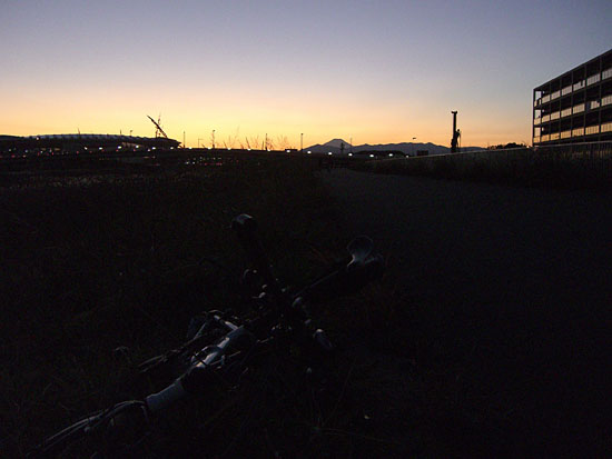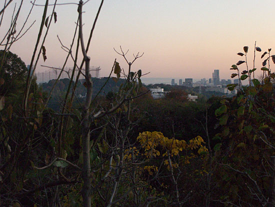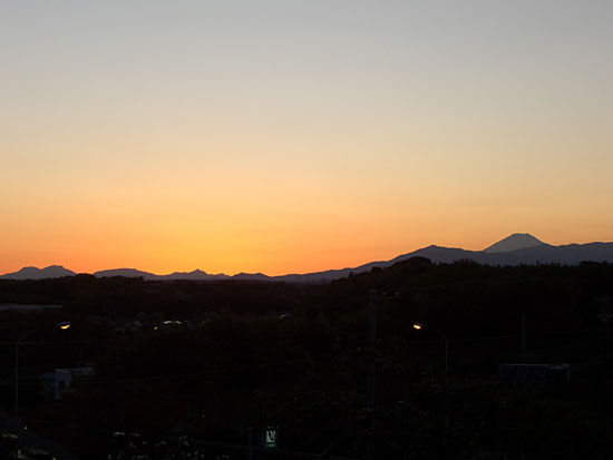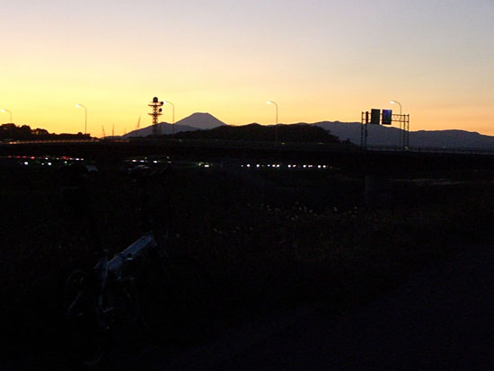 誤って早渕川沿いにでてしまったので勝田橋から団地まで上りかえして第三京浜沿いの道へ寄り道してみる。ちょうど日が沈んだところで箱根〜丹沢、富士山がシルエットになって綺麗に見えていた。