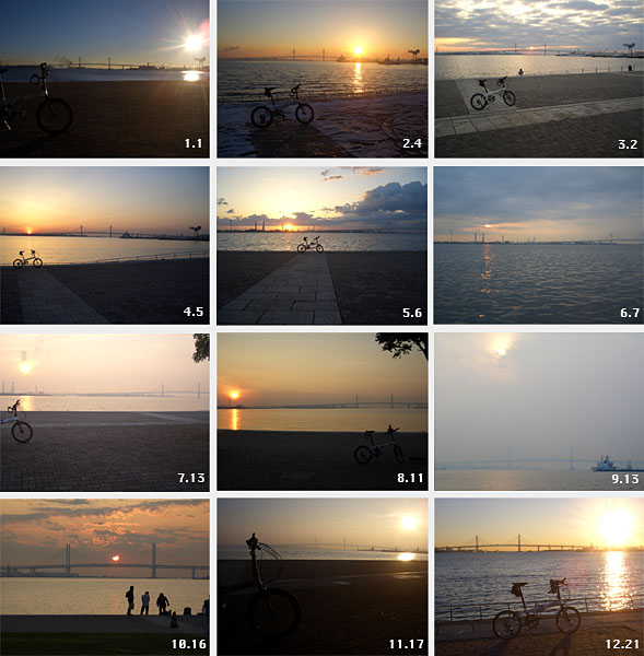 みなとみらい地区のパシフィコ横浜裏手にある臨港パークから見た日の出写真をまとめてみた。写真撮影した場所の多くは真ん中の入口から入ったところで錨のオブジェあたりとか汐入の池付近からのものもあったかもしれない。公園の端から端までは500m弱ほどあるので見る位置によっては多少見え方が違うかもしれない。12月下旬の冬至あたりではガントリークレーンの横に見えるクレーン…何のクレーンなんだろうとネットで検索すると新港埠頭にある通称ハンマーヘッドクレーン、大正14年製で関東大震災にも耐えたとのこと。東洋最古の電動式クレーンで現在は稼働してないらしいということがわかった。そうだとわかると今までなんとはなしにちょっと邪魔だななどと思って見ていたものが急にありがたい物に見えてくるから勝手なものだ…。ということでハンマーヘッドクレーンからベイブリッジ方面にむかって移動していき6月下旬の夏至あたりで大黒ふ頭にあるトゥイニー横浜(火力発電所)の煙突あたりでまた折り返してくるといった感じだ。ちなみに北口は午前5時開門なので日の出が早い時期には注意。そういえば今年は初日の出も見にいかなったしここからの日の出もずいぶんと見ていないなあ。いまじぶんの日の出時刻は6時43分とまだかなり遅いし寒いので出掛けるのにかなり気合いが必要…もうちょっと暖かくなってからいってみることにしよう…。