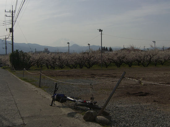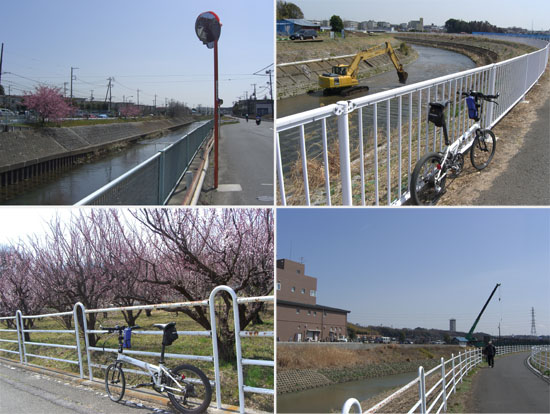 今回はまだ梅が見頃だというので小田原の曽我梅林まで久々(約4ヶ月振り)に100km超の走行。気持ち良く晴れていたので早朝から出発したかったけどなんだかんだで午後10時半近くと遅くなってしまった。R1で行くと最短距離だけど鶴見川・境川経由でいくことにする。中山あたりから梅田川沿いをのんびりと走行してR16号線にでる。川井インター入口から海軍道路入口までは路肩狭く歩道も狭いうえにトラックも多いので走りづらい区間だ。海軍道路の桜並木を抜けて(もう数週間すると満開になるのだろうか)瀬谷踏切先で右折し境川沿いにでる。