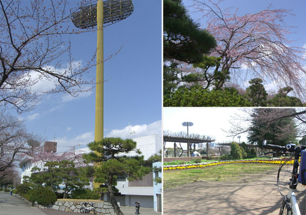 距離は1kmはないだろう。700mほどか。今回はインナーギヤは使用せずにほぼすべて立ち漕ぎでのぼってみた。傾斜は8%から10%程度らしい。表?の道のほうが若干距離が長く傾斜は緩めそうだ。ただこちらのほうが路面が良く車の通行量も少ないので良いかもしれない。15往復ぐらいすればヤビツ峠にのぼる距離にはなりそうだが…。脇の階段には巨人への道という石碑がある。階段最上部には“ようこそ!ジャイアンツ球場へ! 283段制覇!”というペイントがしてある。283段…このあたりの標高は100mちょっとらしい。頂上からジャイアンツ球場方面にいってみることにする。2軍戦が行われていた。スコアボードをみるとFとGと表示してあったのでジャイアンツ対ファイターズ戦なのだろう。観戦するには入場料がかかるようだ。その後読売ランド入口付近をうろうろして坂を下り妙法寺方面への脇道にはいってみる。