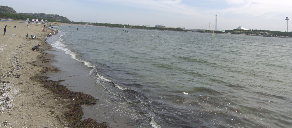 このあたりは富岡総合公園となっているらしい。公園沿いに緩やかに下って鳥浜町でR357号線にでる。金沢柴町交差点を右折して海の公園によってみる。