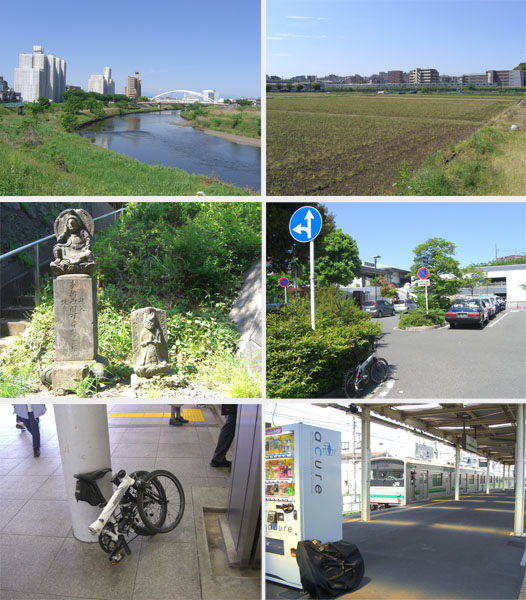 今回は津久井湖から峯の薬師を経て三沢峠~大垂水峠という南高尾山稜を走行?し(ほとんど押し歩き&担ぎ…折り畳み自転車でノーマルタイヤですから…)余裕があれば林道経由で高尾山山頂をめざそうというプランをたててみた。時計をみるとすでに午前9時近くになっていたので今回はJR横浜線鴨居駅あたりから輪行するかなと思い出発。良く晴れていて気持ち良く鶴見川沿いを走行。鴨居駅前を通過し結局十日市場駅まできてしまった。改札前で自転車を折り畳み輪行準備完了。エレベーターでホームに降りてちょうど到着していた電車に乗りこむ。座席は空いていなかったので立っていく。やはり電車は楽だ。矢部駅で降りて駅前で自転車を展開する。時刻は午前10時すぎ(1012)。