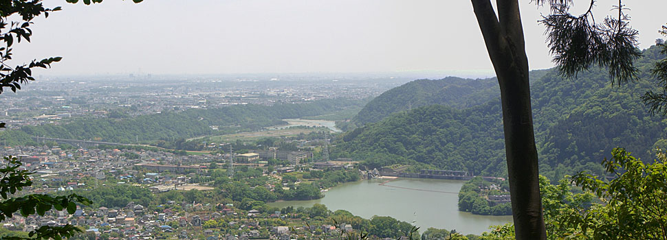 津久井湖と城山を眺めて早々に出発。上中沢バス停から右折して坂道をのぼっていく(バス停脇には峯の薬師まで約1.6kmと表示があった)。分岐地点にでるが標識の文字が消えていて読めない。とりあえず右手に進むと地元の人らしき人に声をかけられる。そっちは行き止まりだよというので左におれてもとの道に復帰すると見覚えのある場所にでた。ここからは道も荒れている上に急坂となるので無理せず押していくことにする。途中に湧き水ポイントがあったので顔を洗ったりして休憩する。ほどなく左手側の視界が開けて津久井湖や市街地が見晴らせた。カーブをひとのぼりすると門が現れた。峯の薬師に到着したようだ(1146)。上中沢バス停から休憩こみで25分ほどかかったようだ。