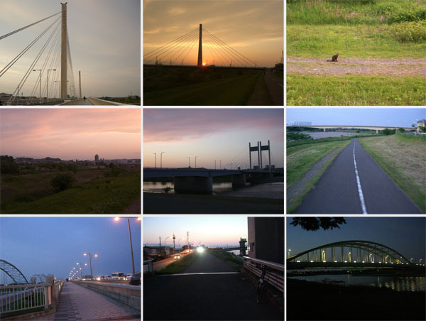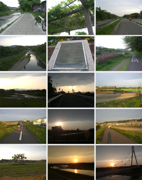 多摩川にでて府中四谷橋を渡るころにちょうど夕陽が山陰に沈んでいった(1821)。是政橋を渡り右岸にでる。多摩川原橋から一般道にでて布田橋から再び川沿い(1900)。暗くなったのでライトを点灯。多摩水道橋下で小休憩(1910)。丸子橋から綱島街道にでて21時前に無事帰宅。