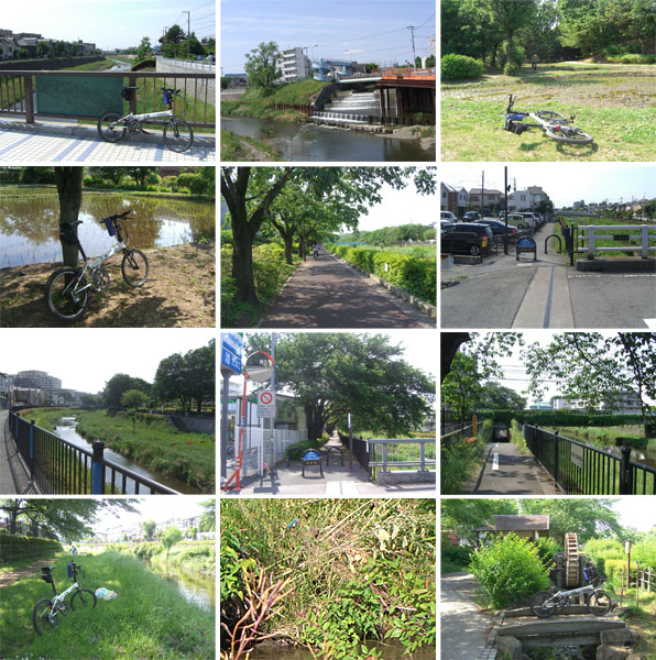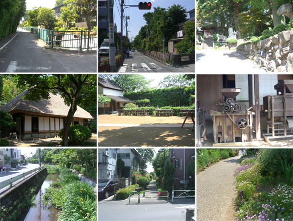 この先右岸は未舗装の遊歩道はあるがサイクリングコースがないので多摩川台公園下を抜けて丸子川沿いにでる。道は狭くスピードは出せないが交通量も少ないのでのんびりと走行していける。二子玉川でR246号線を横断し再び丸子川沿いに戻るとほどなく岡本民家園前にでた(1353)。奥にちょっと入ると古民家があった。ここから丸子川沿いをそれて民家園前の遊歩道を道なりにいくと野川(野川水道橋)にでた(1400)。