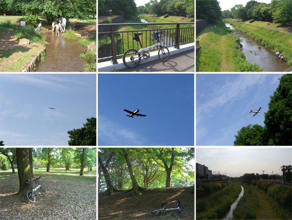 野川公園には15時14分頃に到着。今日はやや暑いせいか子供らが川遊びをしている。東八道路を橋で渡って園内に入る。かなり広い公園だ。園内をふらふらと周回した後にベンチに座って休憩する。腹が減ったのでサンドイッチと缶ジュースで軽く補給。調布飛行場から離陸してきたプロペラ機が上空を通過していく。