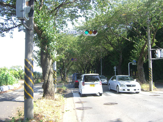新道大橋から環状4号線にでて海軍道路の桜並木下を走行。木陰がありがたい。