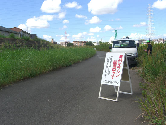 9時20分頃にガス橋着。暑いので水道水で冷却。往路と同じ経路で鷹野大橋まで走行し鶴見川沿いにでると途中、月例マラソン開催中ですという看板がある。この暑さでマラソンというのも大変そうだ。