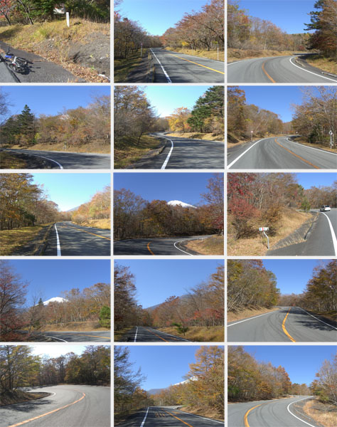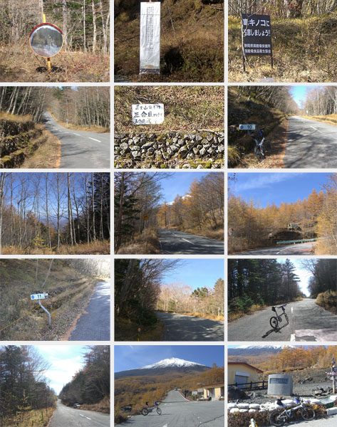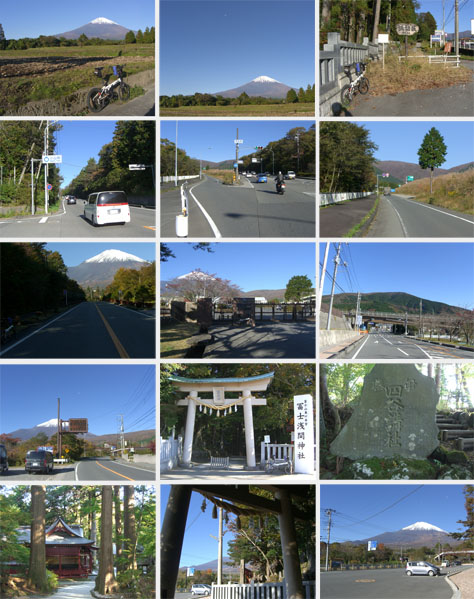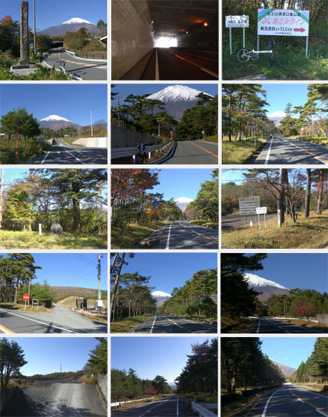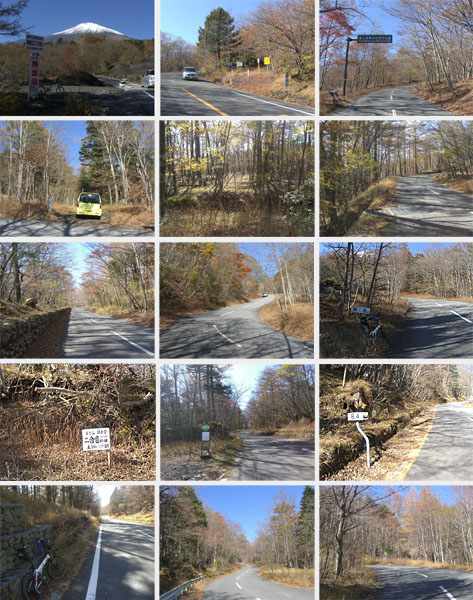 ●R138号線沿いにて(1段目上・中)/諏訪坂看板前にて(1段目右)/御殿場市と小山町境界にて(2段目左)/須走南付近にて(2段目中・右、3段目左)/自衛隊富士学校前にて(3段目中)/須走インター付近にて(3段目右)/富士浅間神社付近にて(4・5段目)