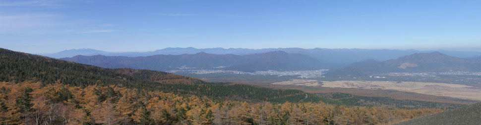 溶岩石をざくざくと踏みながら小山にのぼっていくとさらに先に小山がある。どうやらあの祠のある小山が小富士らしい。眼下には河口湖から山中湖まで大パノラマで広がっていた。左手のほうには八ヶ岳や南アルプスが聳えているのが見える。神奈川方面はちょっと雲がでて霞んでしまっているようだ。グランドキャニオン入口で見た人達だろうか下からのぼってくるのが見える。振り返ると冠雪した富士山が見事だ。小さな岩の上に腰をおろして昼食にすることにする。天気が良いせいか寒さはそれほど感じないが指先はやや冷たくなってきた。もうちょっとゆっくりしていたかったけど戻ることにする。