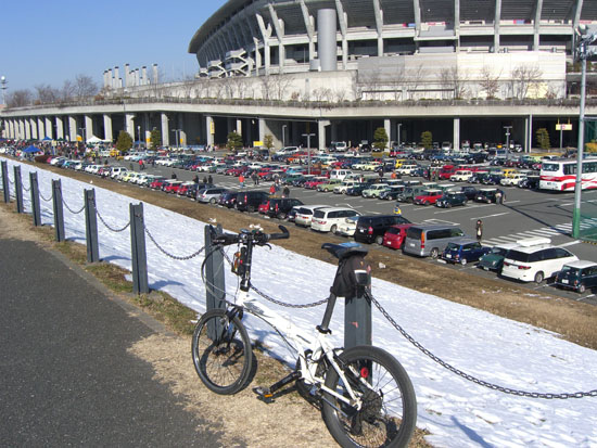 天気も良かったのでなまった身体を鍛えに?それほど遠くない場所まででかけてみようということで10時頃に出発。とりあえず鶴見川沿いを走ってみることにする。大通りは先日降った雪の影響なく走行できた。新横浜あたりの公園の土手の斜面にはまだ解けていない雪が白く残っている。日産スタジアム横の駐車場にまたミニ・クーパーが沢山駐車している。愛好家のミーティングなのだろう。確か去年も遭遇したな。