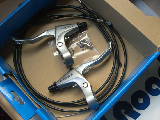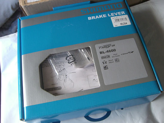 ブレーキ本体は前後ともシマノ製のものに交換していたがレバーのほうはとりあえず不具合はなかったのでそのままにしていた。塗装剥がれがひどくなりさらに転倒してやや曲がってしまったので交換した。購入したのはシマノの“BL-4600”というフラットバー・ロード用のブレーキで“Tiagra”とロゴマークが表示してある。本当はブレーキ本体と同グレードの“Deore”が欲しかったのだが在庫がなかったのだ。店員に訊ねるとこのBL-4600ではMTB用のV-ブレーキからロード用のキャリパーブレーキなど様々な種類に対応しているということが判明。値段もそれほど変わらなかったので購入した。